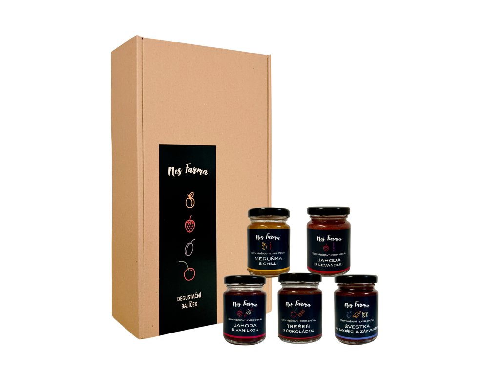Pro milovníky sladkých zážitků! Tento degustační balíček obsahuje 5 poctivých džemů z naší produkce, které vám umožní ochutnat různé chutě a najít si svého favorita. Ideální jako dárek, nebo jako zásoba mlsání k snídani i na pečení.